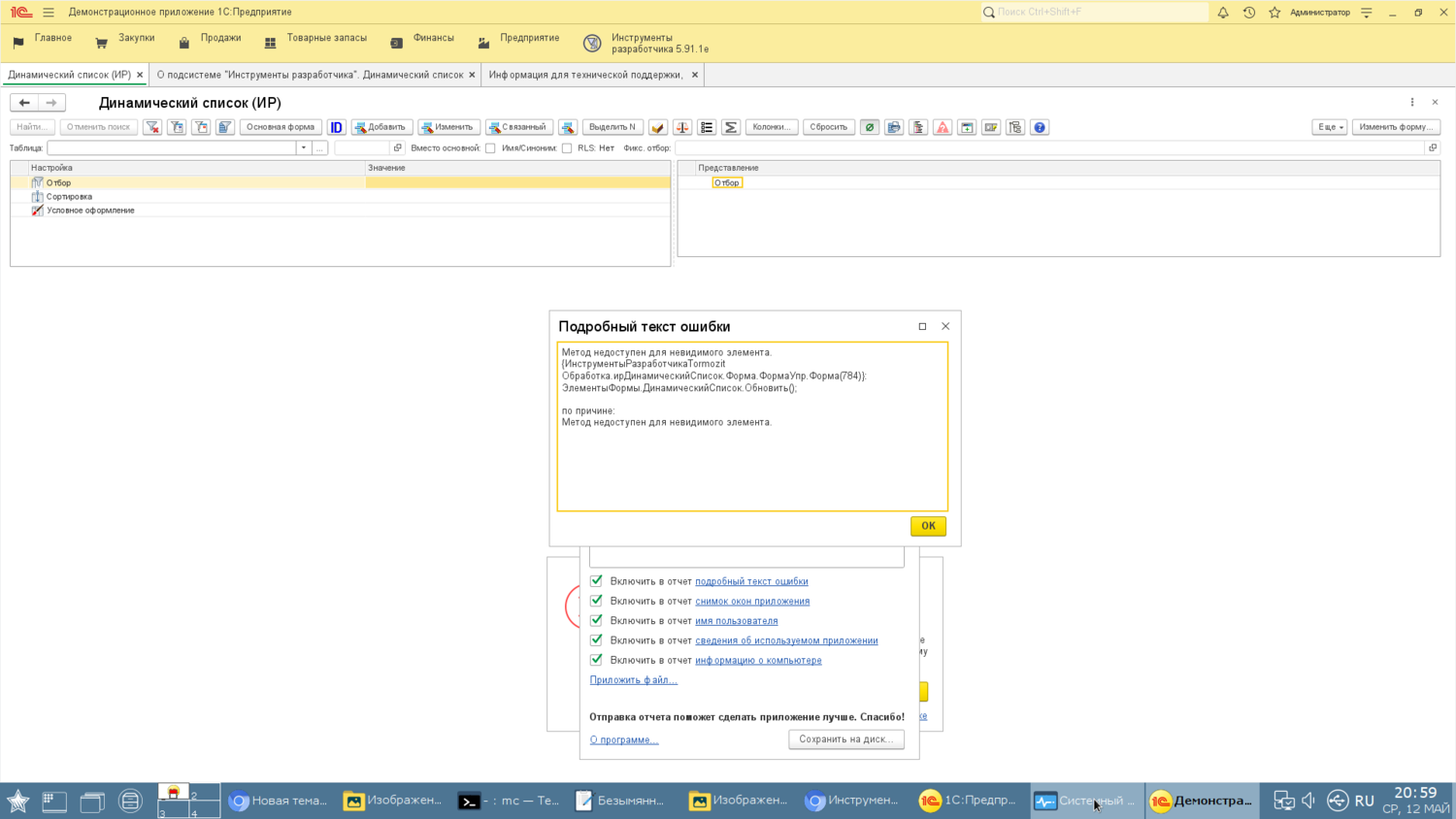 | Форум Основной Проблемные ситуации Динамический список. Не отображать (5.91.1 (LINUX) Расширение) |