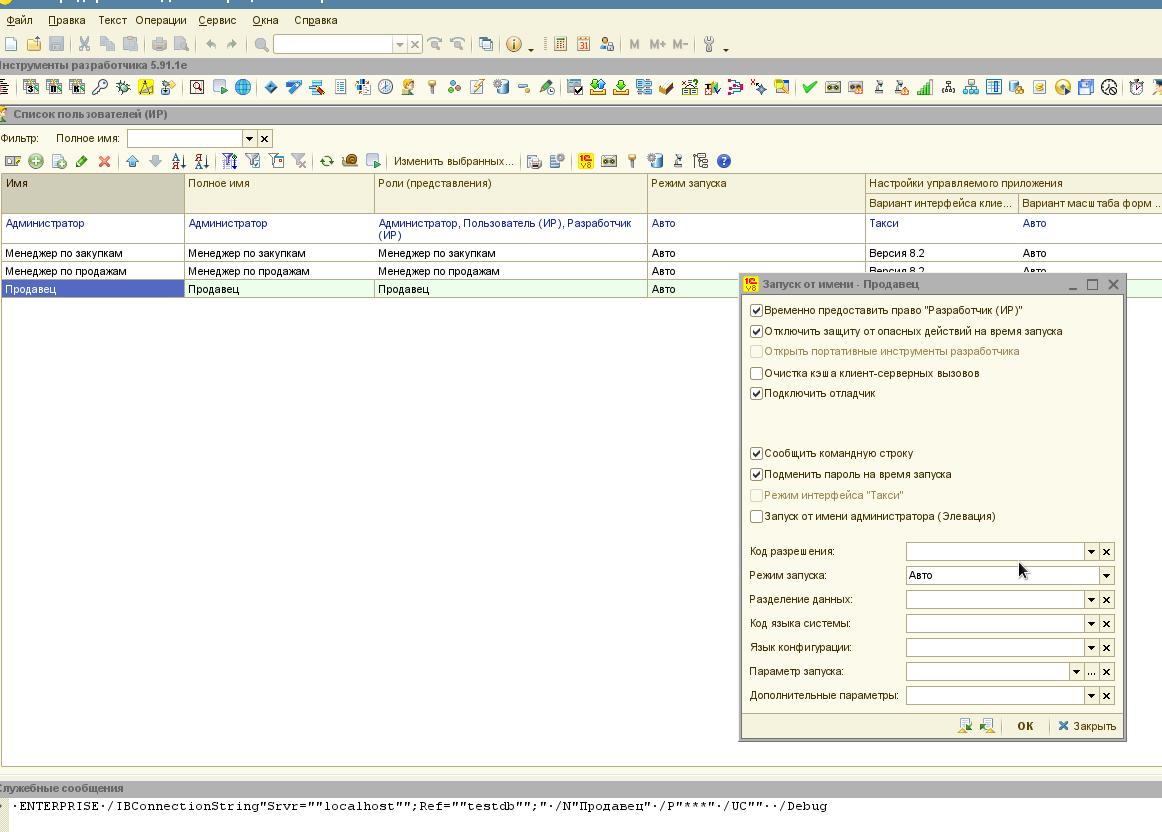 В инструменте "Список пользователей ИР" не происходит запуск под выбранным пользователем через команду "Запустить клиент 1С под пользователем". Ничего не происходит.