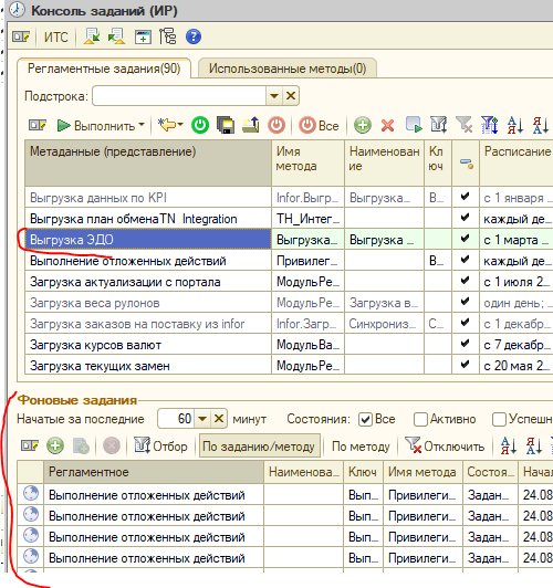 Консоль заданий портативный вариант, список фоновых.