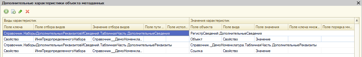 | Покажи значения всех реквизитов той характеристики, которая указана в сообщении. Покажи окно "Дополнительные характеристики объекта метаданных"