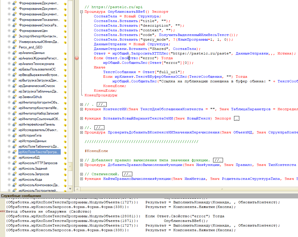 | При выполнении команды "Опубликовать на paste1c.ru" у объекта HTTPОтвет нет метода Свойство(). Ошибка возникла из-за отсутствия обработки не успешного ответа (выход из диапазона кодов ответа 200-300) у метода ирОбщий.ЗапроситьХТТПЛкс при получении кода ответа 400.