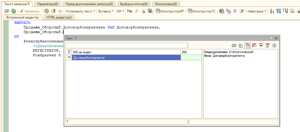 Контрагент = ЗНАЧЕНИЕ(Справочник.Контрагенты.ПустаяСсылка)) КАК Продажи_ОборотыТ